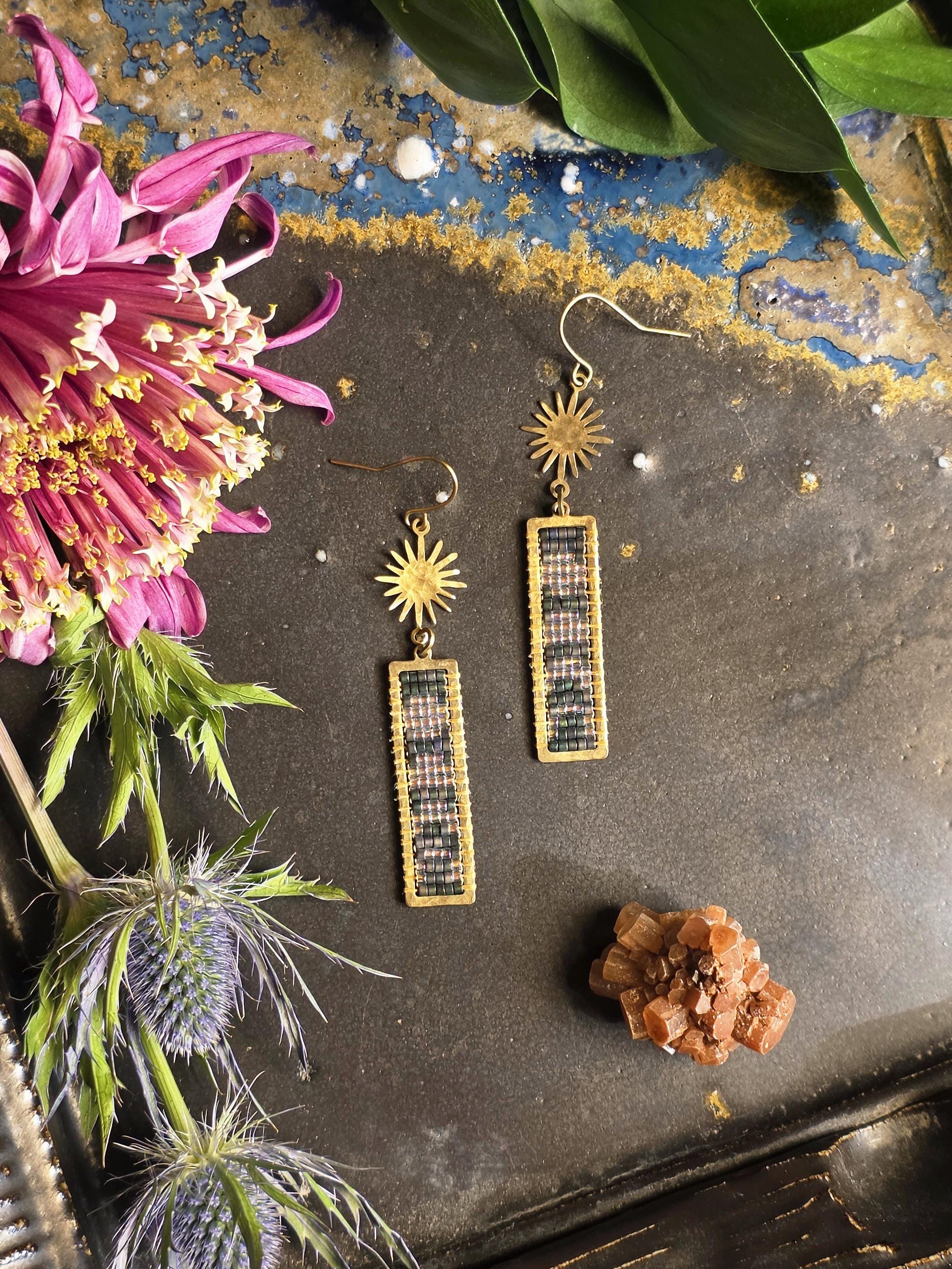 Handmade hammered brass earrings with glass beads