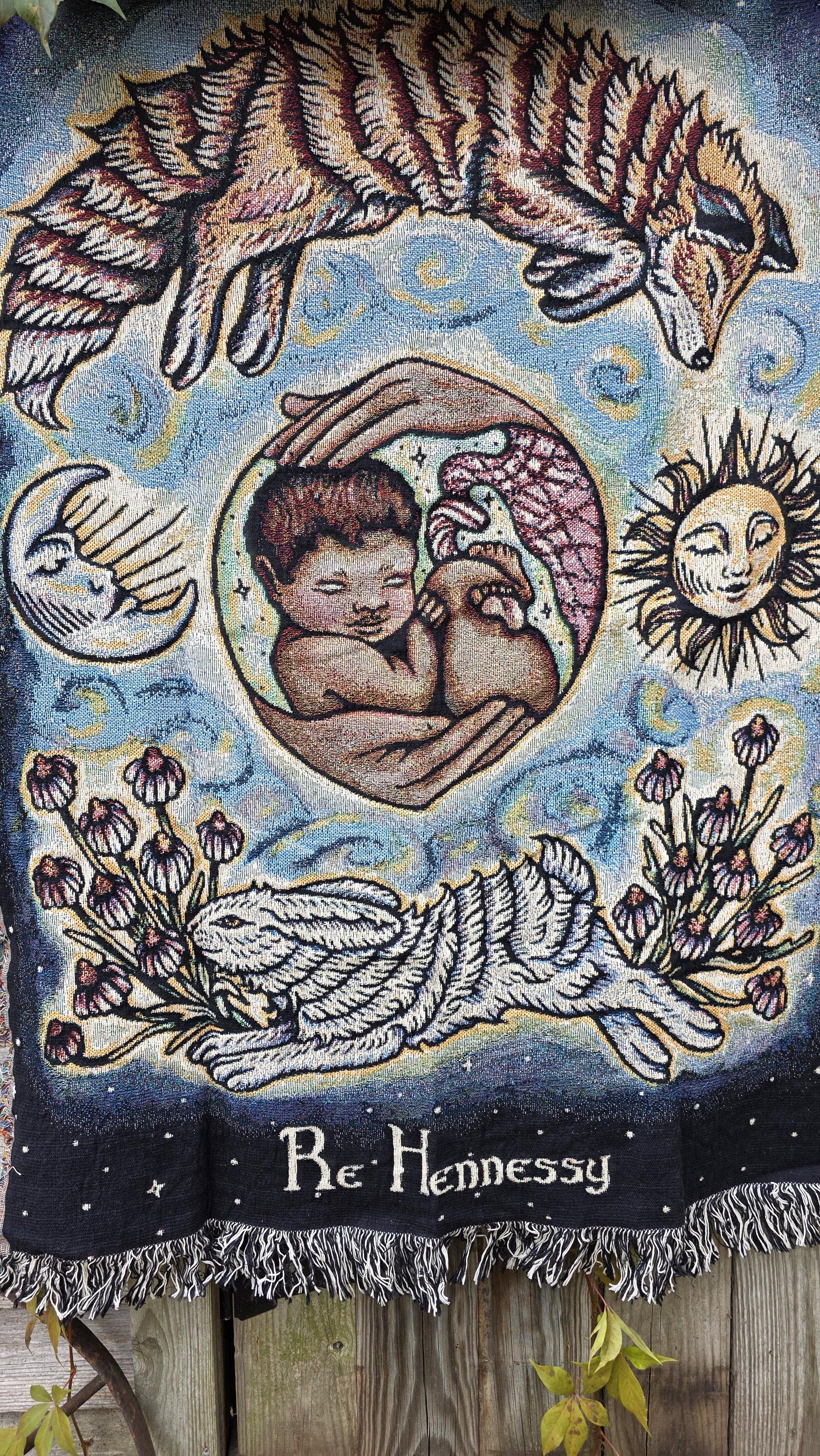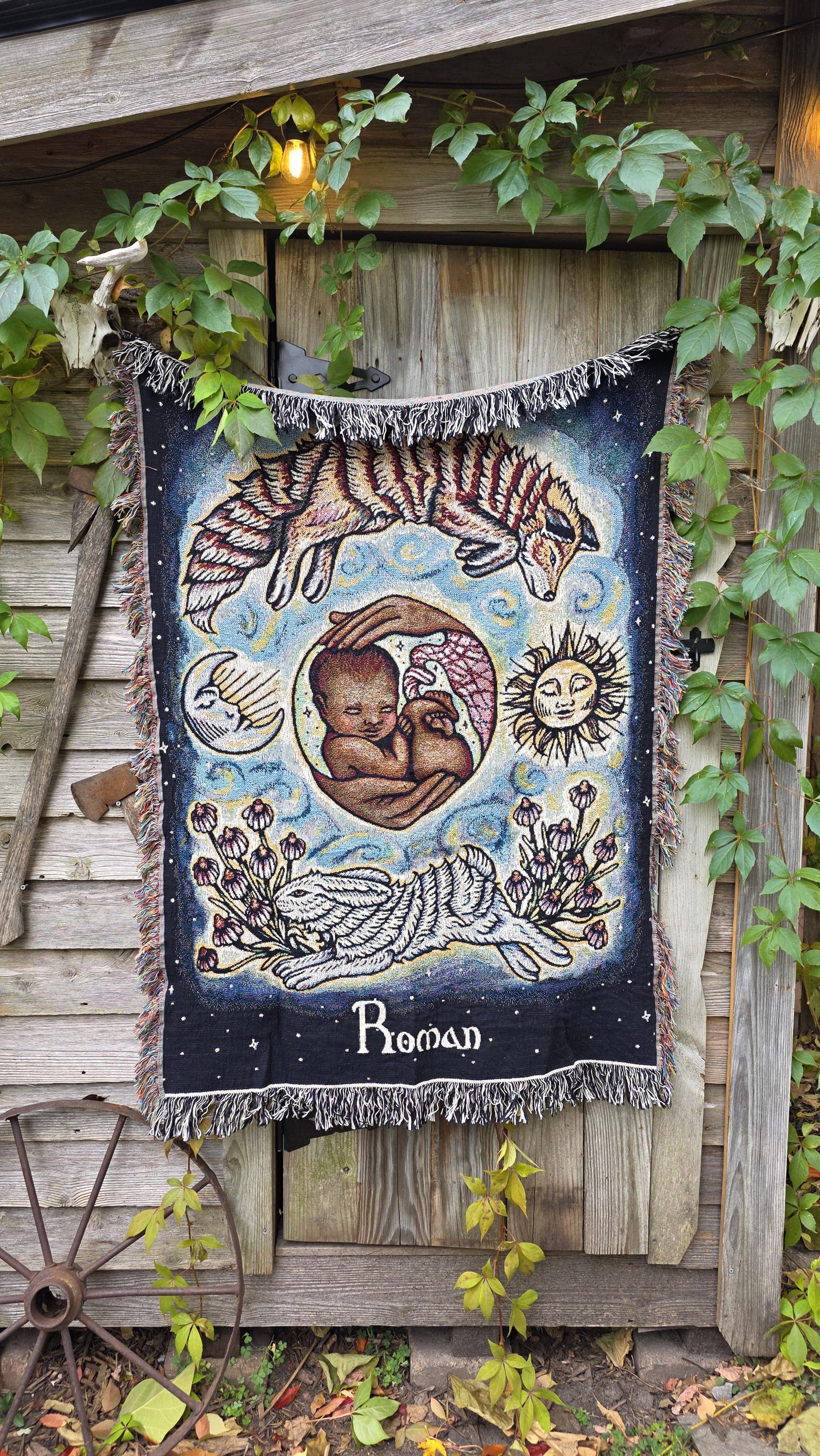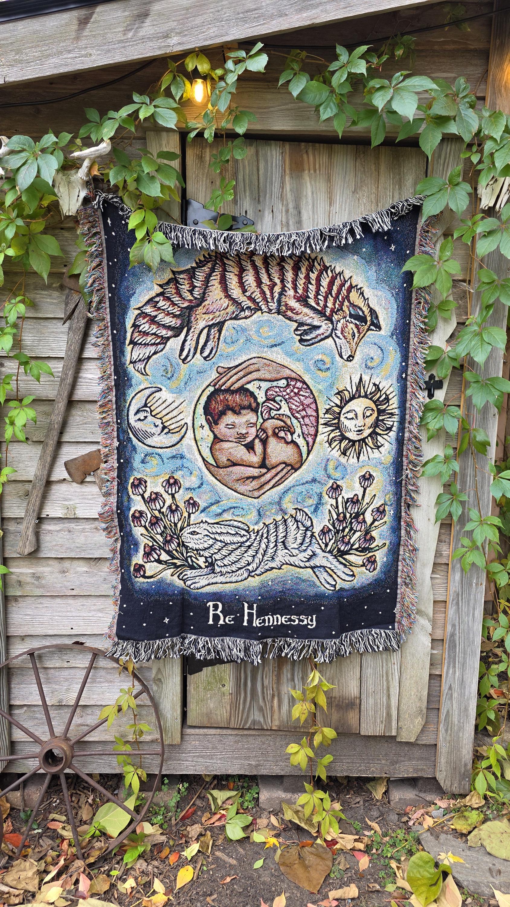 Woven blankets are designed to be hung on a wall as a tapestry, or as a couch throw blanket.
