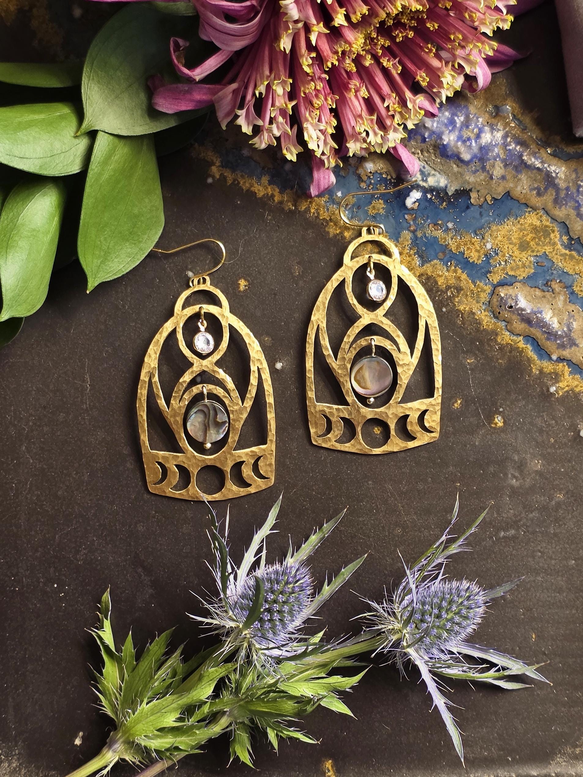 These symbolic Vulva or Mother Baby earrings are individually textured using a hand-hammering technique, adding depth, texture, and giving them an organic, artisan finish.